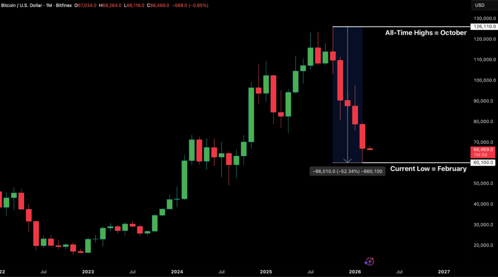 Derivatives positioning confirms a comprehensive leverage reset. Futures open interest has fallen by more than 50 percent from its October peak, while funding rates briefly plunged deeply negative following the Iran escalation, signalling a sentiment trough and short-heavy positioning. Historically, such extremes create the conditions for reflexive squeezes if spot demand follows through. The options market, however, presents a nuanced picture: near-term skew remains defensive, with strong demand for downside protection, while quarterly positioning into late March shows a pronounced call bias clustered around $80,000–$90,000.