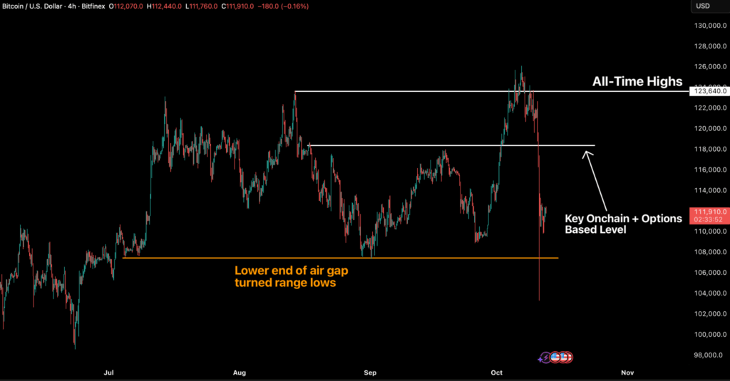 The sell-off was sparked by aggressive spot selling as US-China tariff tensions began escalating on 10 October, creating a 2.5x imbalance between sellers and buyers across major exchanges. Once the news broke of US tariffs on Chinese imports, futures markets compounded the decline, with Cumulative Volume Delta readings showing an overwhelming dominance of sell-side flow across both spot and perpetual markets. Historically, such liquidation-driven capitulations have been followed by mechanical rebounds as volatility compresses and excess leverage is flushed. For Bitcoin, reclaiming and holding above $110,000 would confirm a stabilisation phase and open recovery targets near $117,000–$120,000, while failure to do so risks a retest of the $100,000 zone.