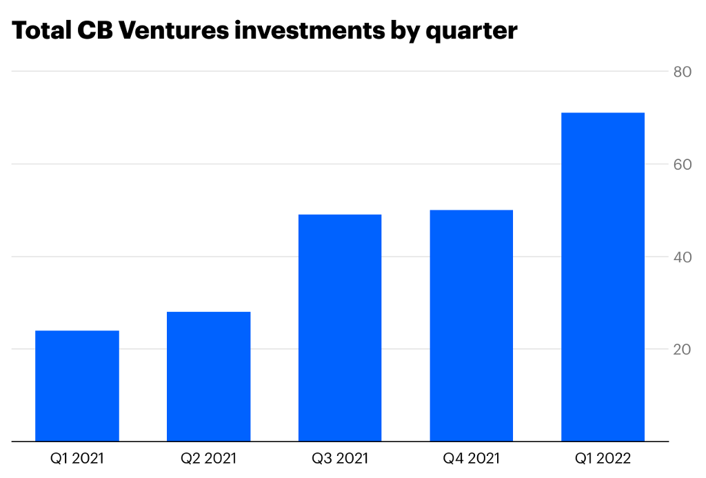 Amidst a shaky macro picture, many crypto investors are on edge. More frequently, we’re getting asked how the market downturn will affect CB Ventures’ activity. To date, there’s no shortage of high quality entrepreneurs building in crypto and Web3. It isn’t however unreasonable to expect a slowdown should prices continue to sag, similar to what’s been observed in broader venture funding (down 19% QoQ). Regardless, our strategy won’t change much.