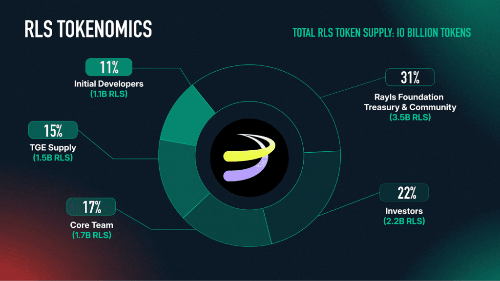At the Token Generation Event (TGE), approximately 1.5 billion RLS (15% of total supply) entered circulation. The remaining supply is allocated across ecosystem development, contributors, investors and community initiatives, with long-term vesting schedules designed to align incentives with sustainable network growth.
