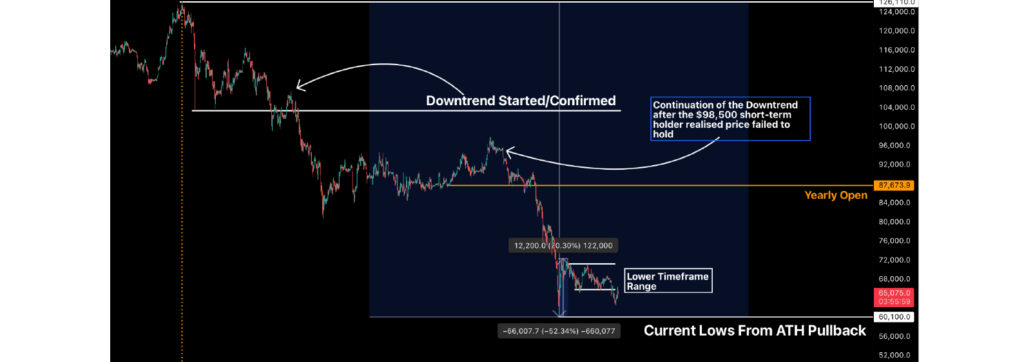 Bitcoin has fallen as far as  52.3 percent,  and has still not confirmed a bottom, despite a 20 percent bounce off the lows since 5 February. Currently, price is still  below the $65,000 local range low this week and is retesting lower lows. Given heightened uncertainty in the market following the Supreme Court ruling on the elevated tariff regime introduced by President Trump, precious metals, gold and silver have regained traction, while in  crypto markets,  traders are paying a premium  for downside protection — a trend that had actually reversed just last week for the first time in several months.