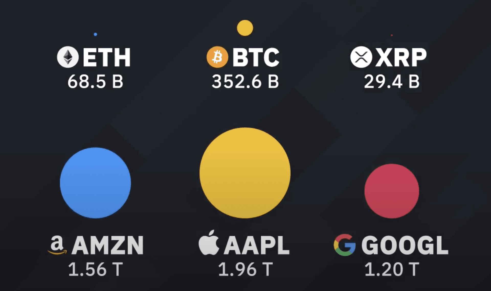 Click the thumbnail below to watch BTC, ETH, and XRP’s growth in total market cap since 2015 compared to AMZN, AAPL, and GOOGL.