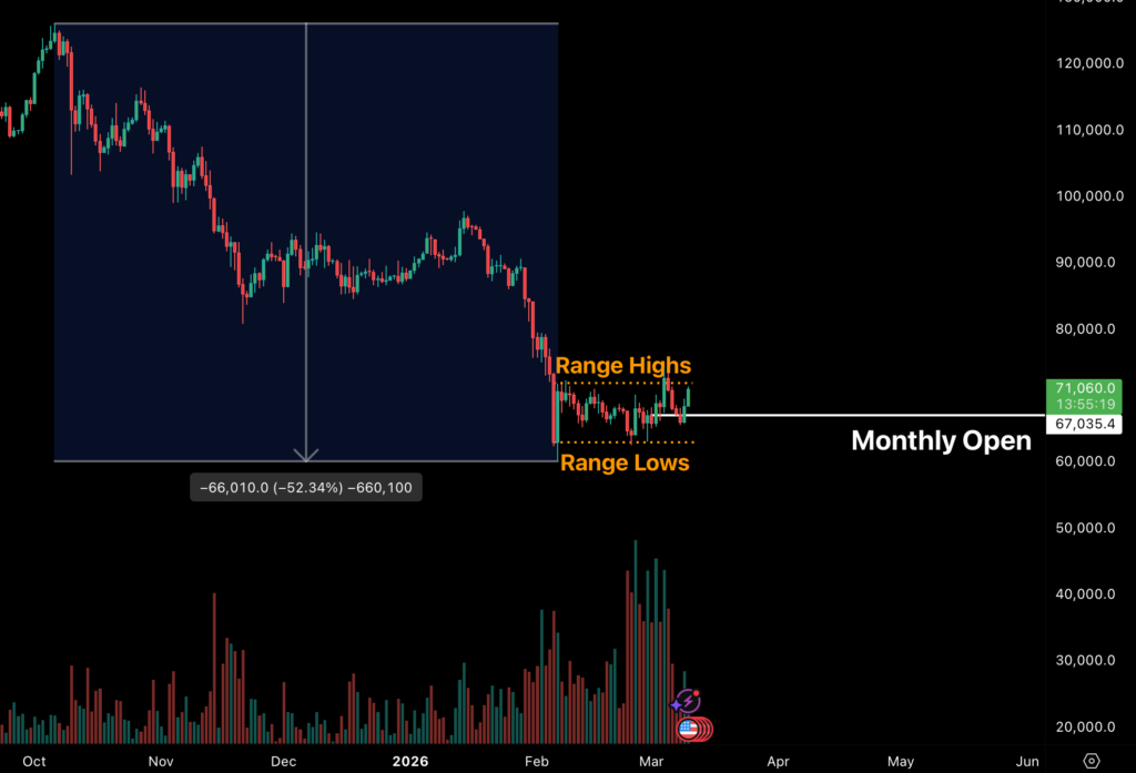 March opened with an aggressive three-day expansion from 2 to 4 March of $1.14 billion in net inflows, only to be met by a $576.8 million distribution wall on 5–6 March as price approached the $72,000 range highs. The session on 9 March confirmed the return of the bid, with a net inflow of $167.1 million, though the figure offers limited encouragement at present.
